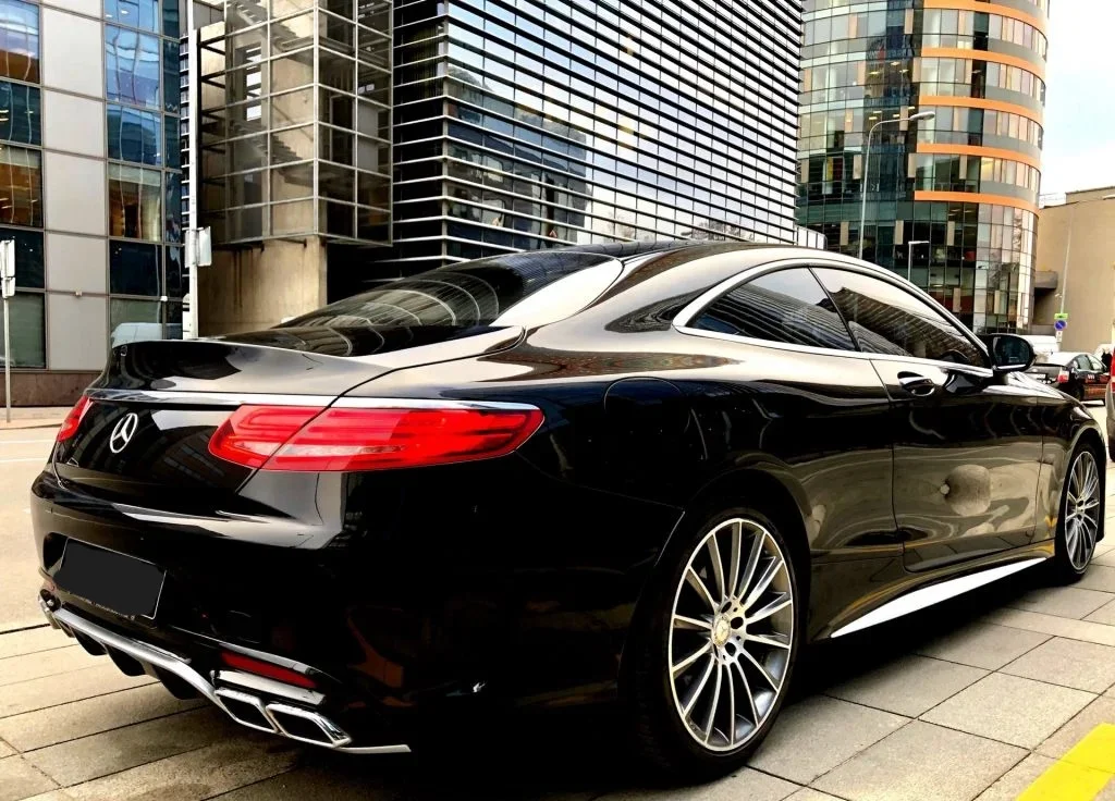 Mercedes-Benz S500 AMG Coupe nuoma su vairuotoju - ieškote išskirtinio automobilio, kuris ne tik žavėtų savo dizainu, bet ir užtikrintų nepriekaištingą važiavimo komfortą? Mercedes-Benz S500 AMG Coupé nuoma – tai tobulo balanso tarp sportiškumo ir prabangos pasirinkimas. Šis automobilis patiks tiems, kurie vertina ne tik greitį, bet ir rafinuotą estetiką. Kodėl verta rinktis S500 AMG Coupé? Išskirtinis dizainas. Dviejų durų kupė su elegantiškai žemėjančia stogo linija ir dinamišku siluetu – tai automobilis, kuris traukia akį visur. Idealus pasirinkimas išskirtinėms fotosesijoms, pasirodymams ar vestuvėms. AMG paketas. Sportiškesnis kėbulo dizainas, agresyvesni buferiai, išskirtiniai ratlankiai bei galingesnė išmetimo sistema – tai S klasė su charakteriu. Galingas variklis. Po kapotu – V8 turbininis variklis, kuris leidžia mėgautis sklandžiu ir galingu važiavimu tiek mieste, tiek užmiestyje. Prabangus interjeras. Dviejų sėdynių konfigūracija su papildomomis galinėmis vietomis, aukščiausios kokybės oda, stiklinispanoraminis stogas, pažangi multimedijos sistema – tai tikra kelionės patirtis. Tylus, komfortiškas važiavimas. Pneumatinė pakaba užtikrina sklandų judėjimą net blogesniais keliais, o triukšmo izoliacija – ramybę kiekviename kilometre.