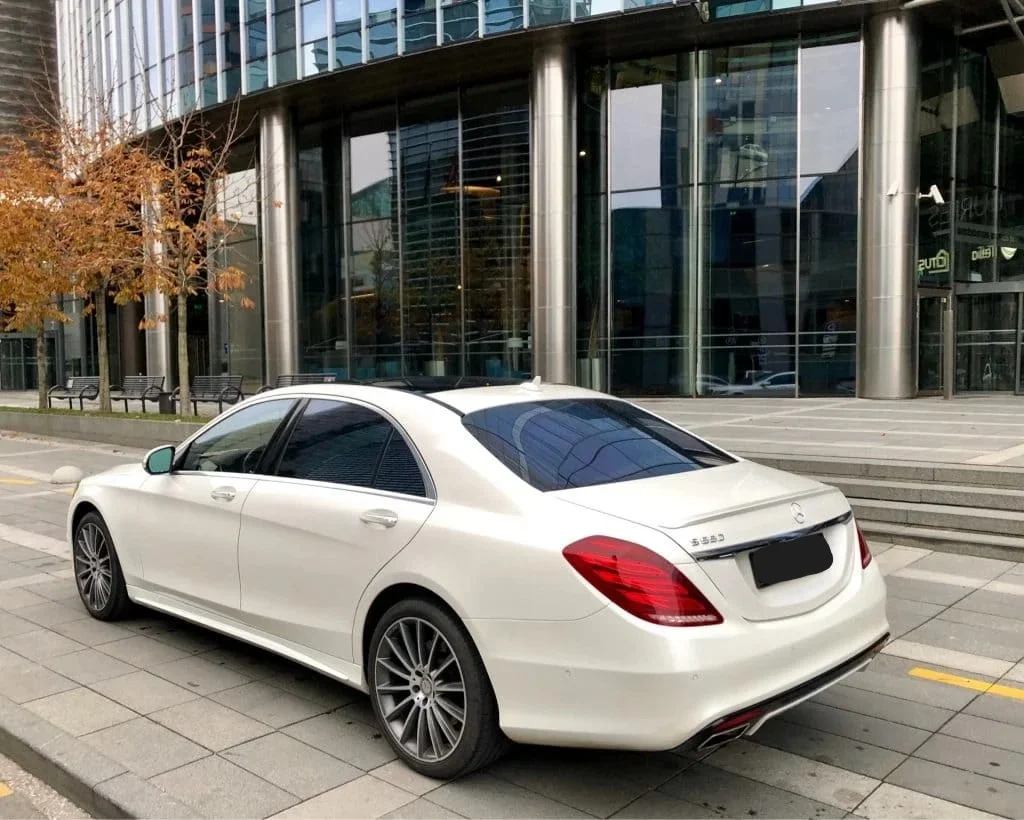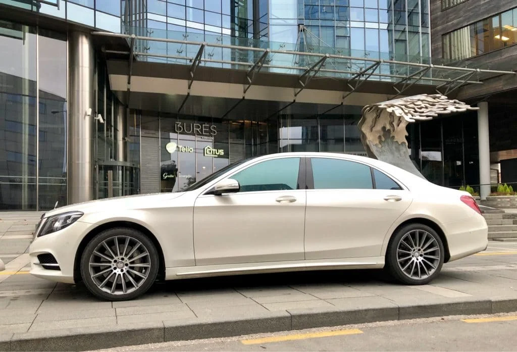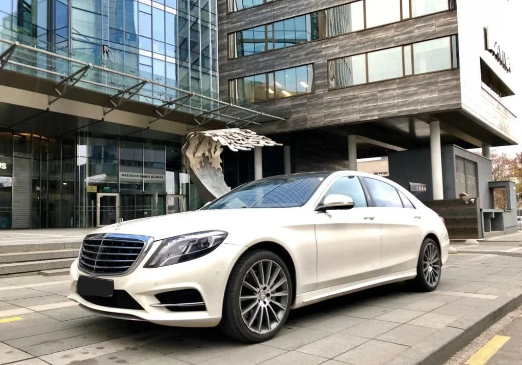 Mercedes-Benz S550 Long (W222) nuoma su vairuotoju - ieškote patikimo, elegantiško ir aukščiausios klasės automobilio ypatingai progai, verslo susitikimui ar VIP svečių pervežimui? 2018 metų Mercedes-Benz S-Class W222 nuoma – tai prabangos ir komforto standartas, tinkantis tiek iškilmingoms šventėms, tiek kasdieniam profesionaliam naudojimui. Kodėl verta rinktis S klasės W222 (2018)? Klasikinis dizainas. S klasė visada išlieka prabangos etalonu. Šis modelis išsiskiria švaria linija, solidžia išvaizda ir subtilia elegancija, kuri tinka bet kokiai progai. Idealiai tinka verslo susitikimams, svarbių svečių pervežimui ar patogiai kelionei į/iš oro uosto. Aukščiausio lygio įranga. Odiniai salonai, masažinės sėdynės, dviejų zonų (ar daugiau) klimato kontrolė, tylus važiavimas – tai kelionė be jokio streso. Diskretiška prabanga. Nors automobilis solidus, jis neperžengia subtilumo ribų – puikus pasirinkimas norintiems elegancijos be perdėto dėmesio.