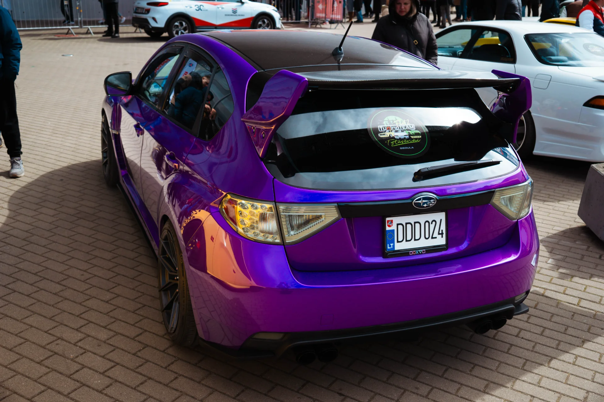 Tikras STI, išskirtinė Lamborghini Viola Pasifae spalva (efektas išryškėja ant saulės), Maxton kėbulo apdailos, XXR 10" pločio ratlankiai (žiemos sezonu originalūs - paskutinė foto), karboninis spoileris, smoked galiniai žibintai, žeminta važiuoklė, modifikuotas išmetimas turintis atpažįstamą Subaru bu-bu-bu garsą (šios kartos modeliai iš gamyklos jo neturi), Recaro sėdynės, gauges. Ateityje gali atsirasti daugiau modifikacijų. Automobilis atkreipia dėmesį į save tiek gatvėse tiek parodose. Randasi Trakuose, galimas atvykimas į bet kurią vietą Europoje. Nuomojamas visus metus nepriklausomai nuo oro.